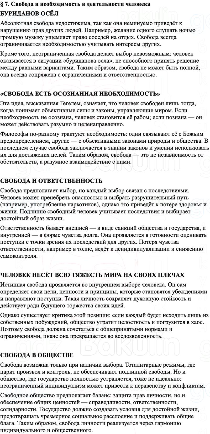 Краткое содержание пересказ Параграф 7. Свобода и необходимость в деятельности человека