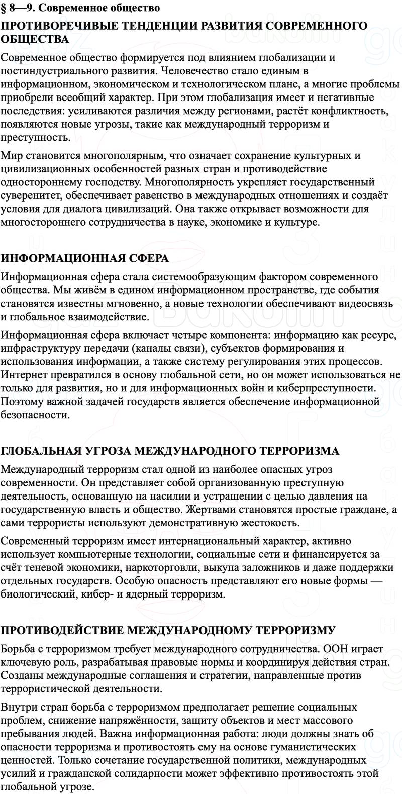 Краткое содержание пересказ Параграф 8—9. Современное общество