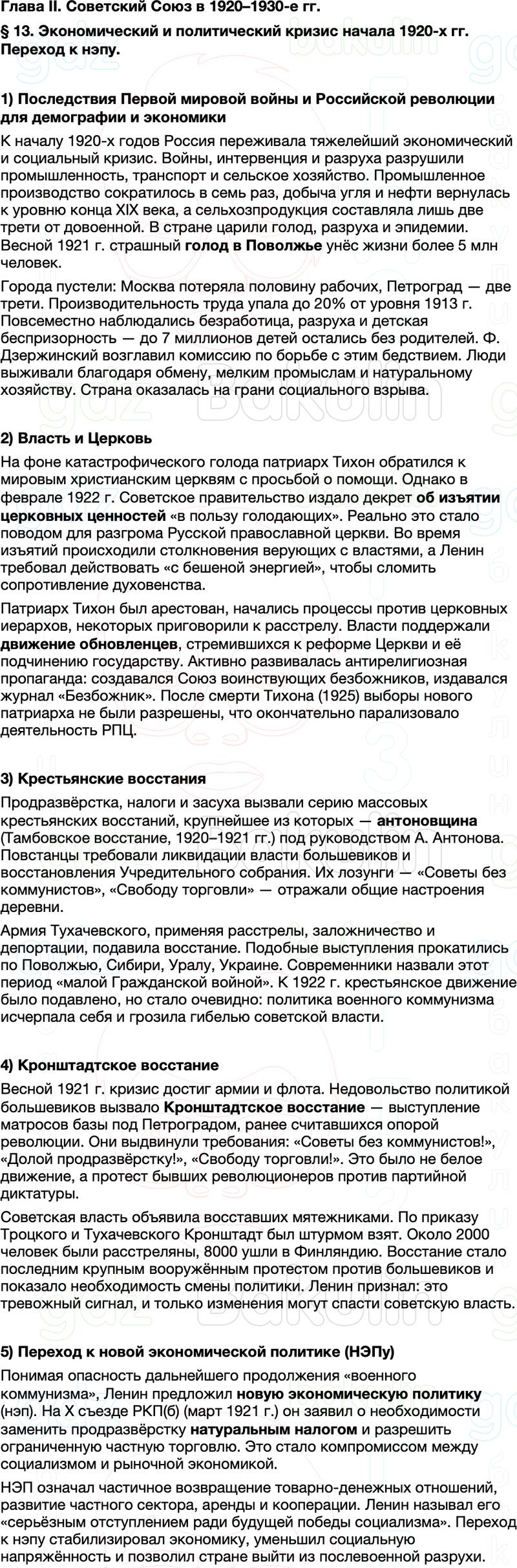 Правильный ответ к заданию из Краткий пересказ содержание История России 10 класс Мединский, Торкунов 2025 Параграф, номер 13 бесплатно онлайн