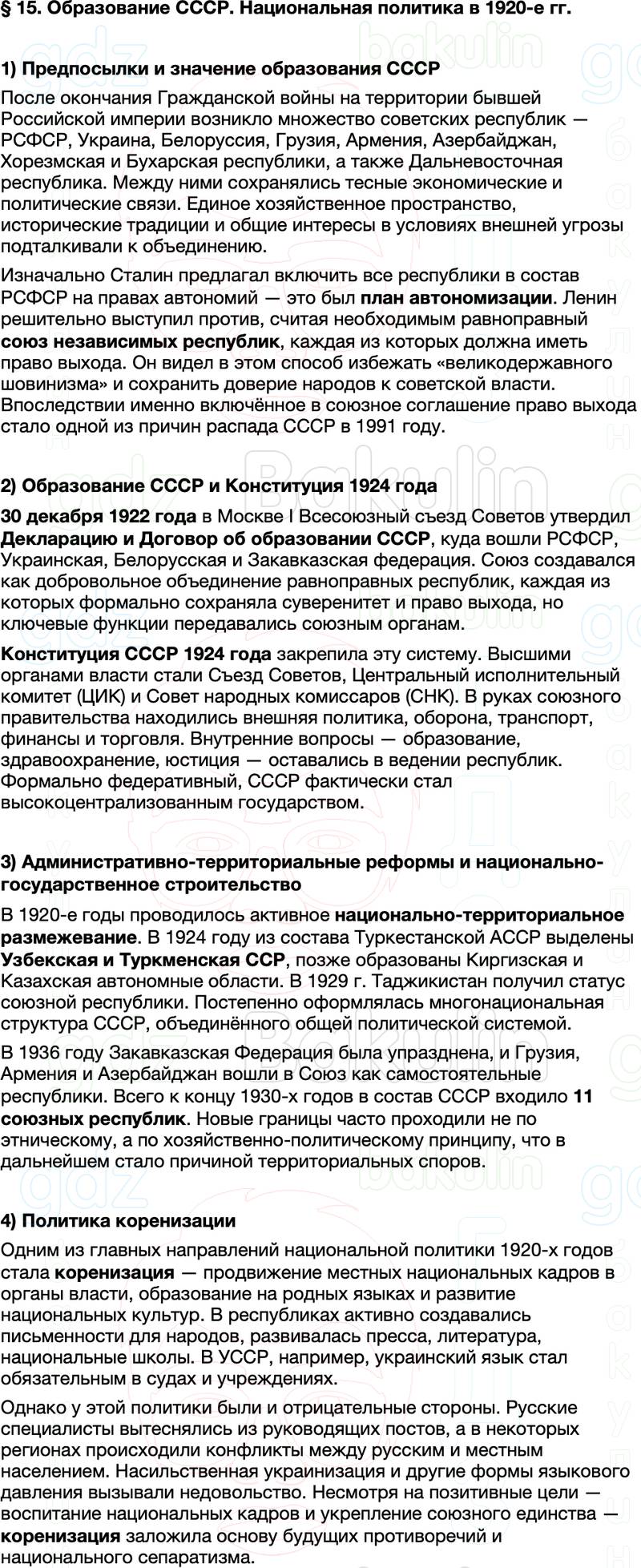 Правильный ответ к заданию из Краткий пересказ содержание История России 10 класс Мединский, Торкунов 2025 Параграф, номер 15 бесплатно онлайн