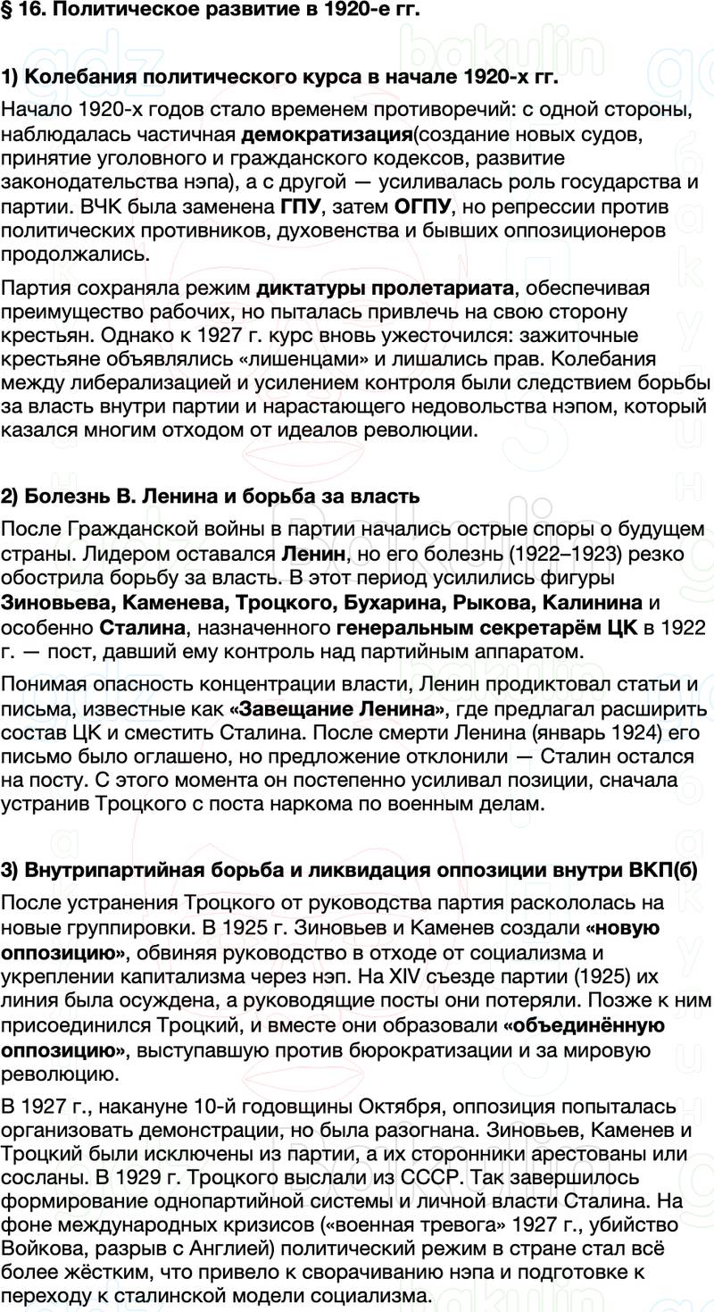 Правильный ответ к заданию из Краткий пересказ содержание История России 10 класс Мединский, Торкунов 2025 Параграф, номер 16 бесплатно онлайн