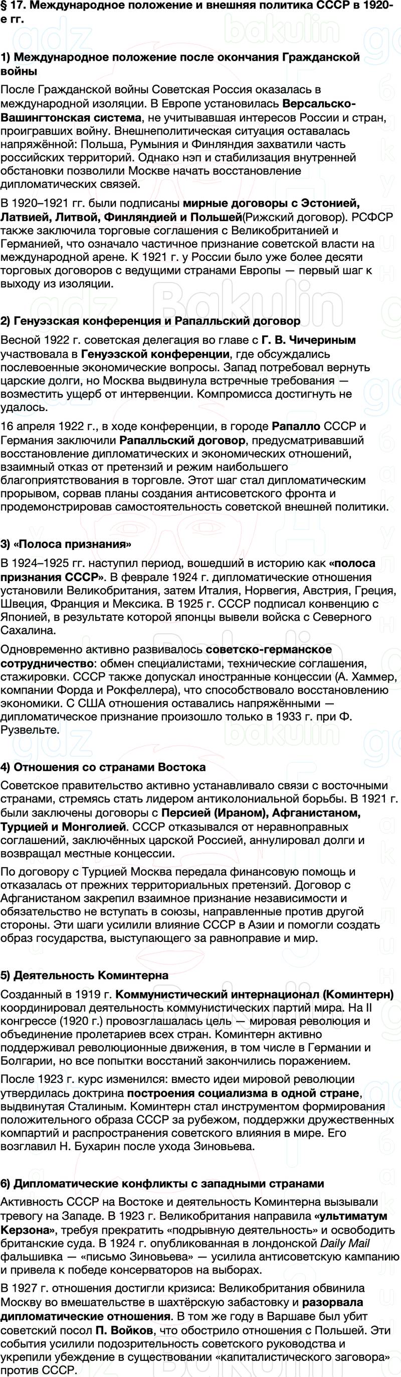 Правильный ответ к заданию из Краткий пересказ содержание История России 10 класс Мединский, Торкунов 2025 Параграф, номер 17 бесплатно онлайн