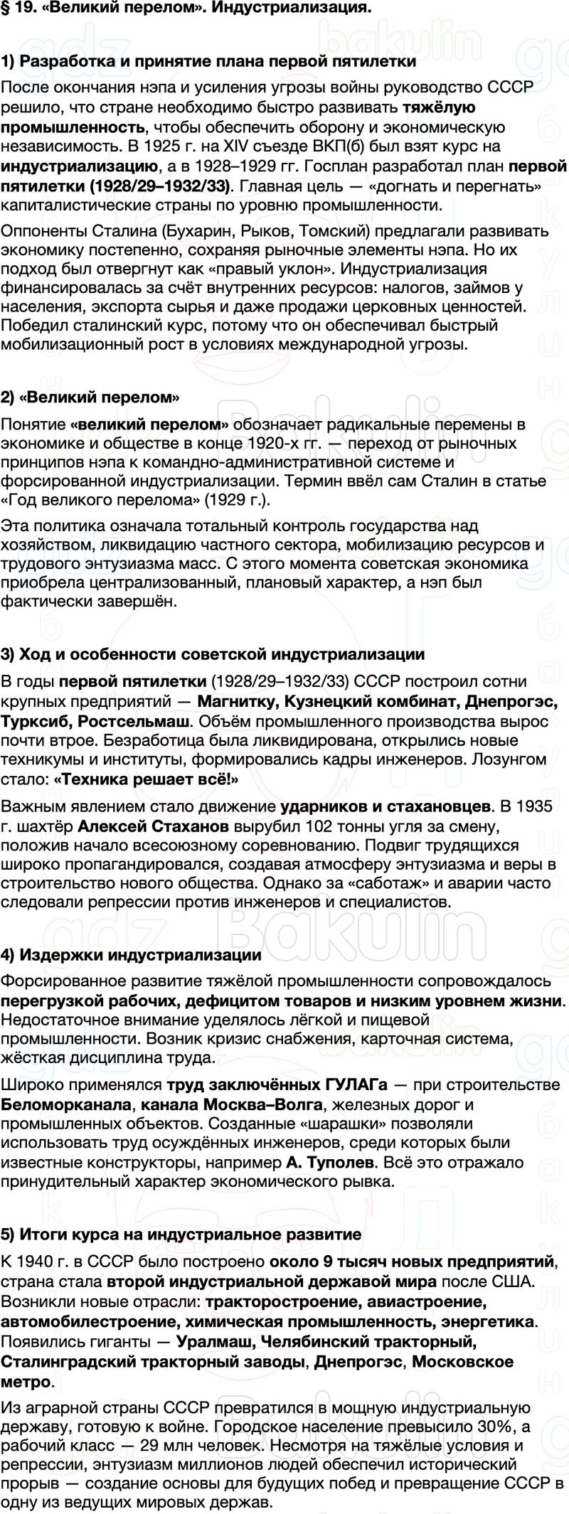 Правильный ответ к заданию из Краткий пересказ содержание История России 10 класс Мединский, Торкунов 2025 Параграф, номер 19 бесплатно онлайн