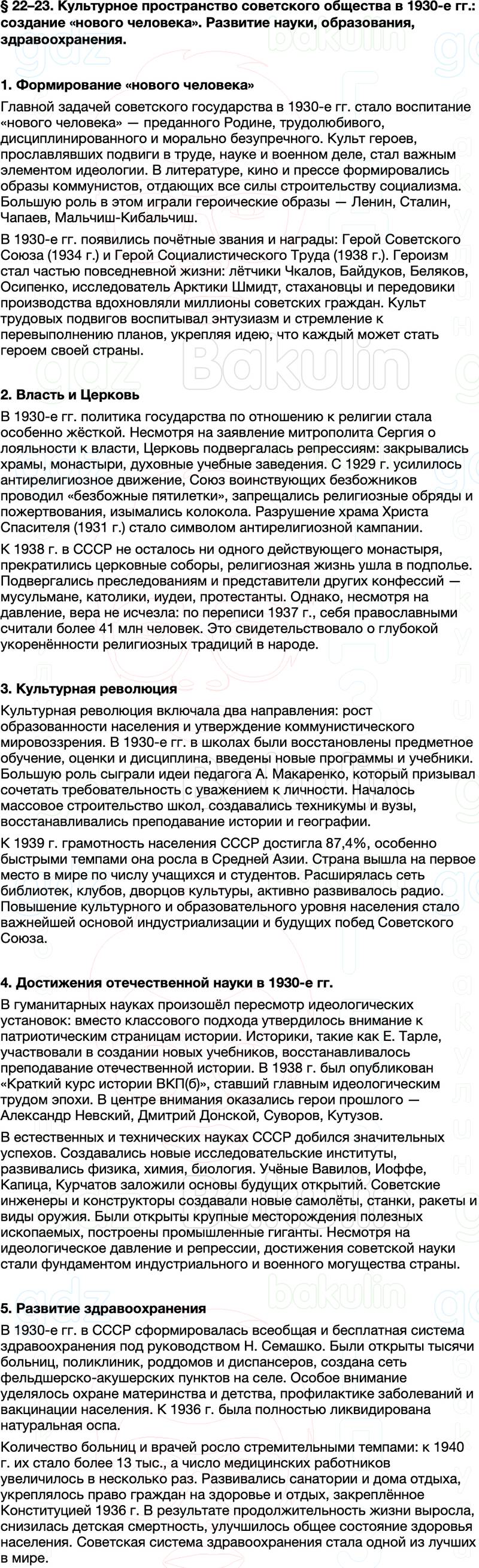 Правильный ответ к заданию из Краткий пересказ содержание История России 10 класс Мединский, Торкунов 2025 Параграф, номер 22-23 бесплатно онлайн