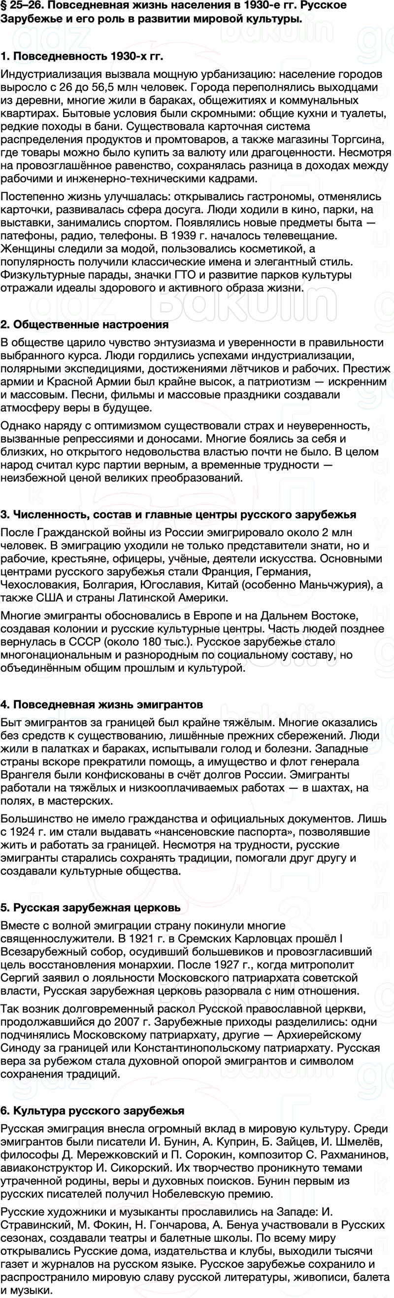 Правильный ответ к заданию из Краткий пересказ содержание История России 10 класс Мединский, Торкунов 2025 Параграф, номер 25-26 бесплатно онлайн