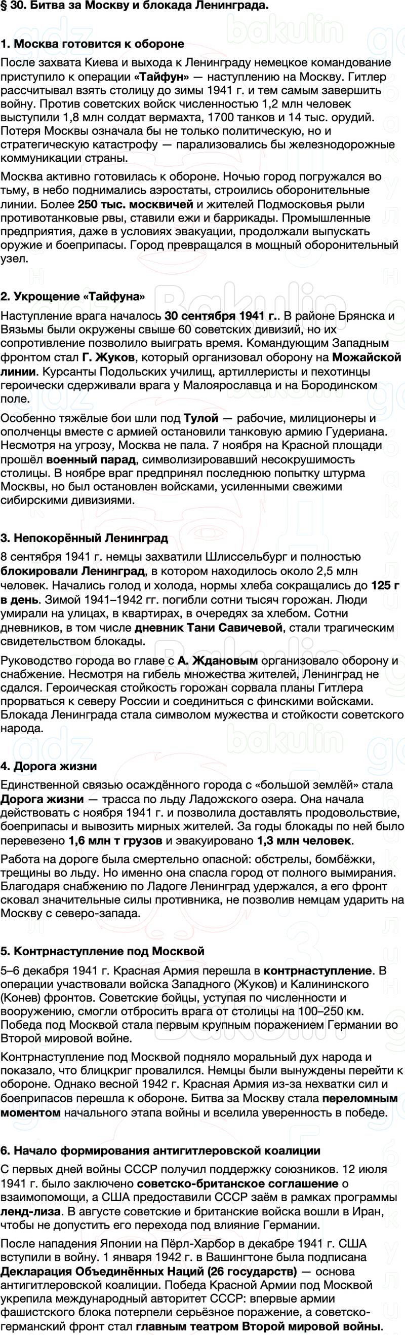 Правильный ответ к заданию из Краткий пересказ содержание История России 10 класс Мединский, Торкунов 2025 Параграф, номер 30 бесплатно онлайн