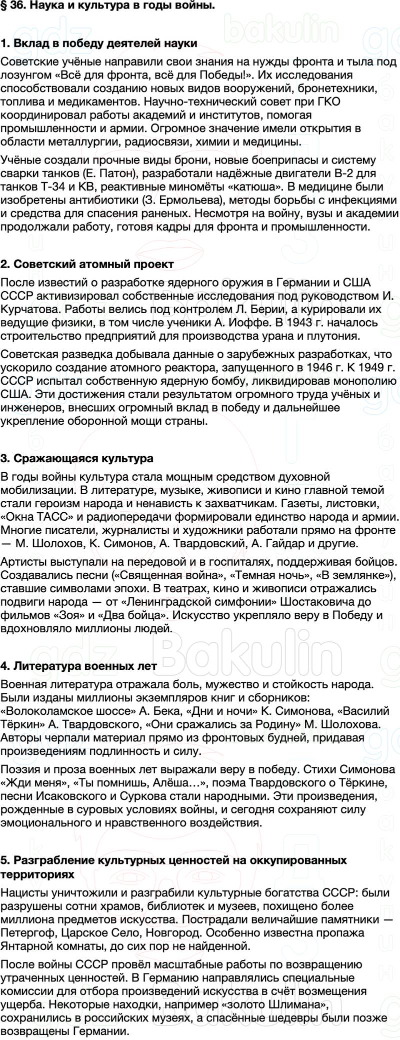 Правильный ответ к заданию из Краткий пересказ содержание История России 10 класс Мединский, Торкунов 2025 Параграф, номер 36 бесплатно онлайн