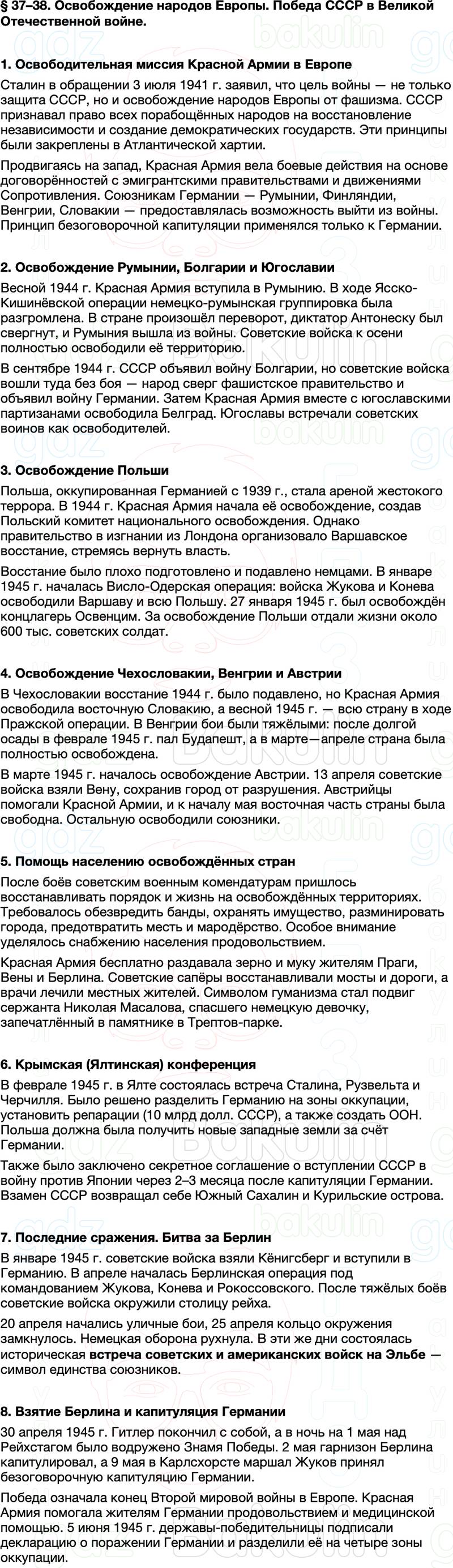 Правильный ответ к заданию из Краткий пересказ содержание История России 10 класс Мединский, Торкунов 2025 Параграф, номер 37-38 бесплатно онлайн