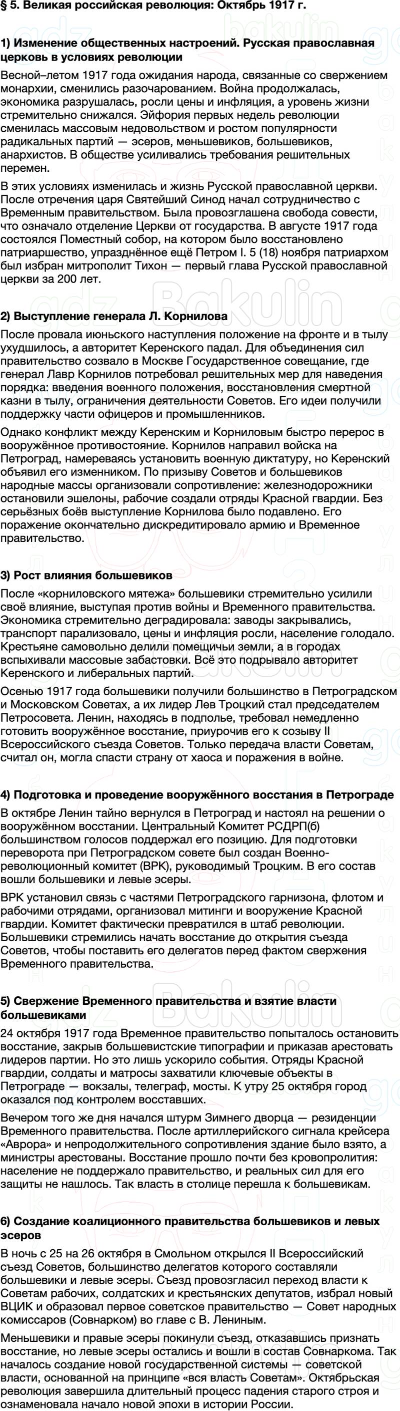 Правильный ответ к заданию из Краткий пересказ содержание История России 10 класс Мединский, Торкунов 2025 Параграф, номер 5 бесплатно онлайн