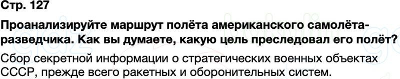 Проанализируйте маршрут полёта американского самолёта-разведчика. Как вы думаете, какую цель преследовал его полёт?