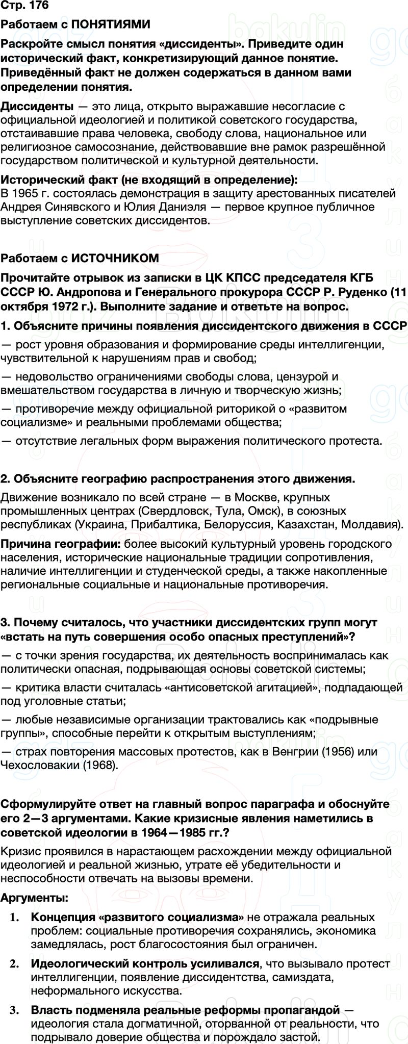 Готовый вариант выполнения заданий История России учебник с 1945 года