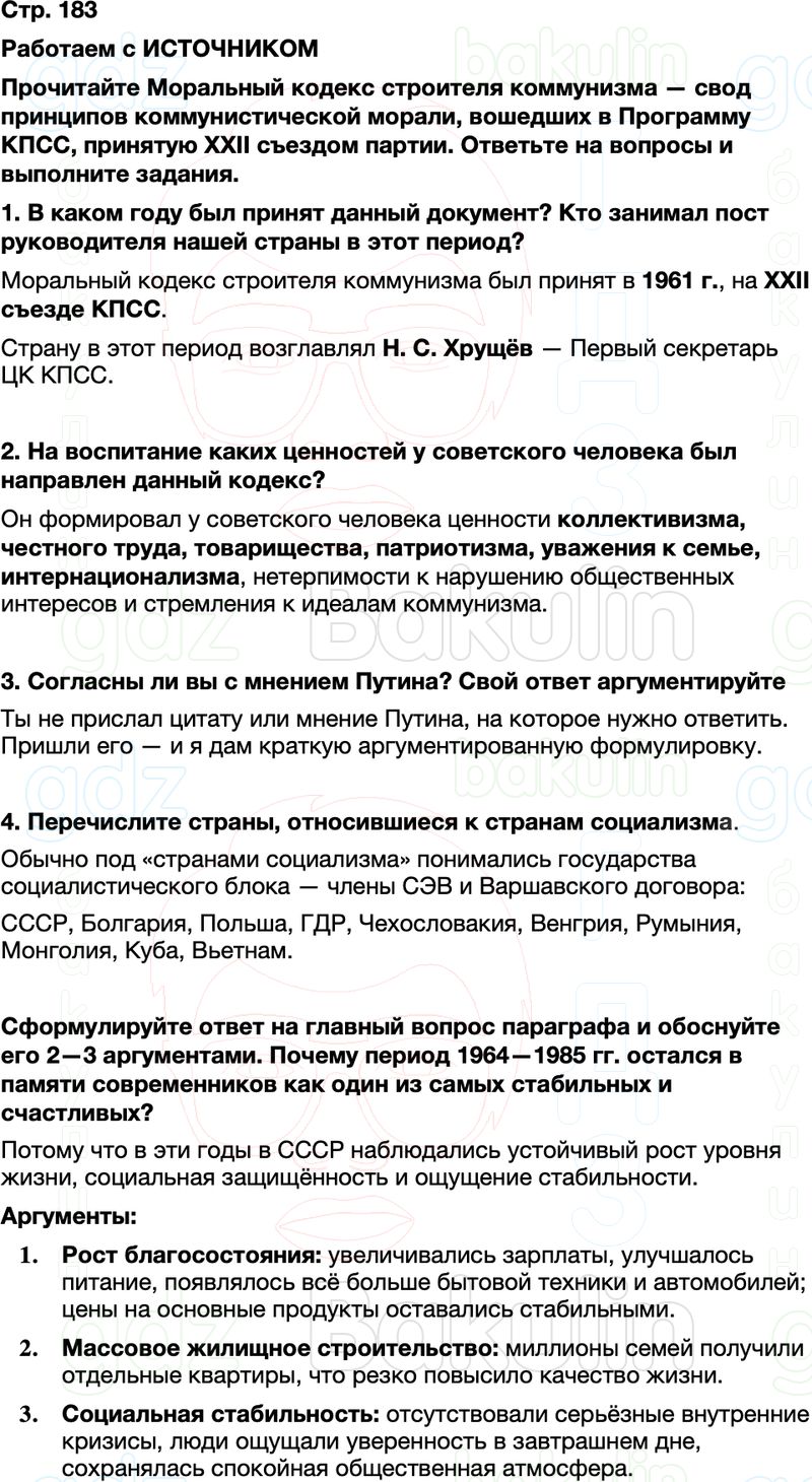 4. Перечислите страны, относившиеся к странам социализма. Сформулируйте ответ на главный вопрос параграфа и обоснуйте его 2—3 аргументами.