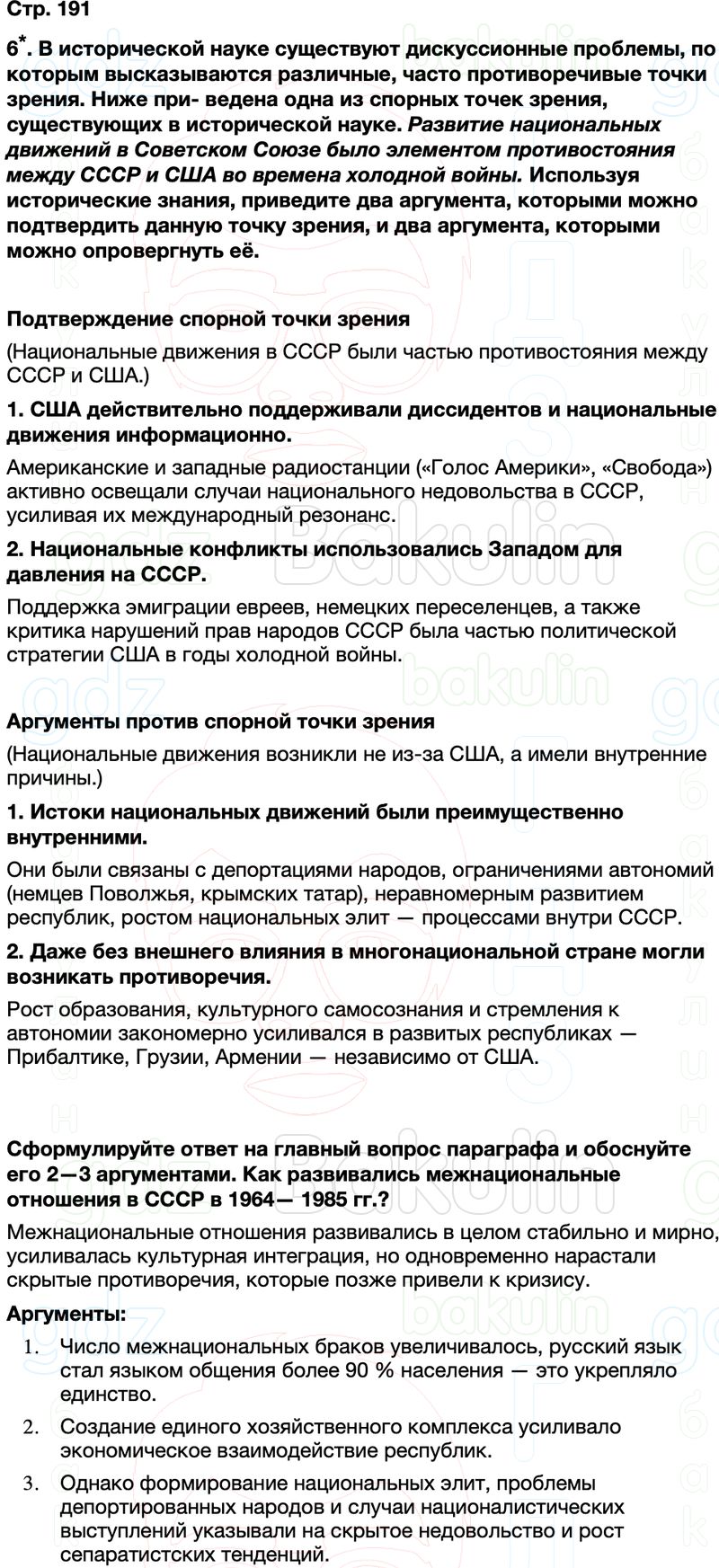 6. В исторической науке существуют дискуссионные проблемы, по которым высказываются различные, часто противоречивые точки зрения. Ниже приведена одна из спорных точек зрения, существующих в исторической науке. Сформулируйте ответ на главный вопрос параграфа и обоснуйте его 2—3 аргументами.