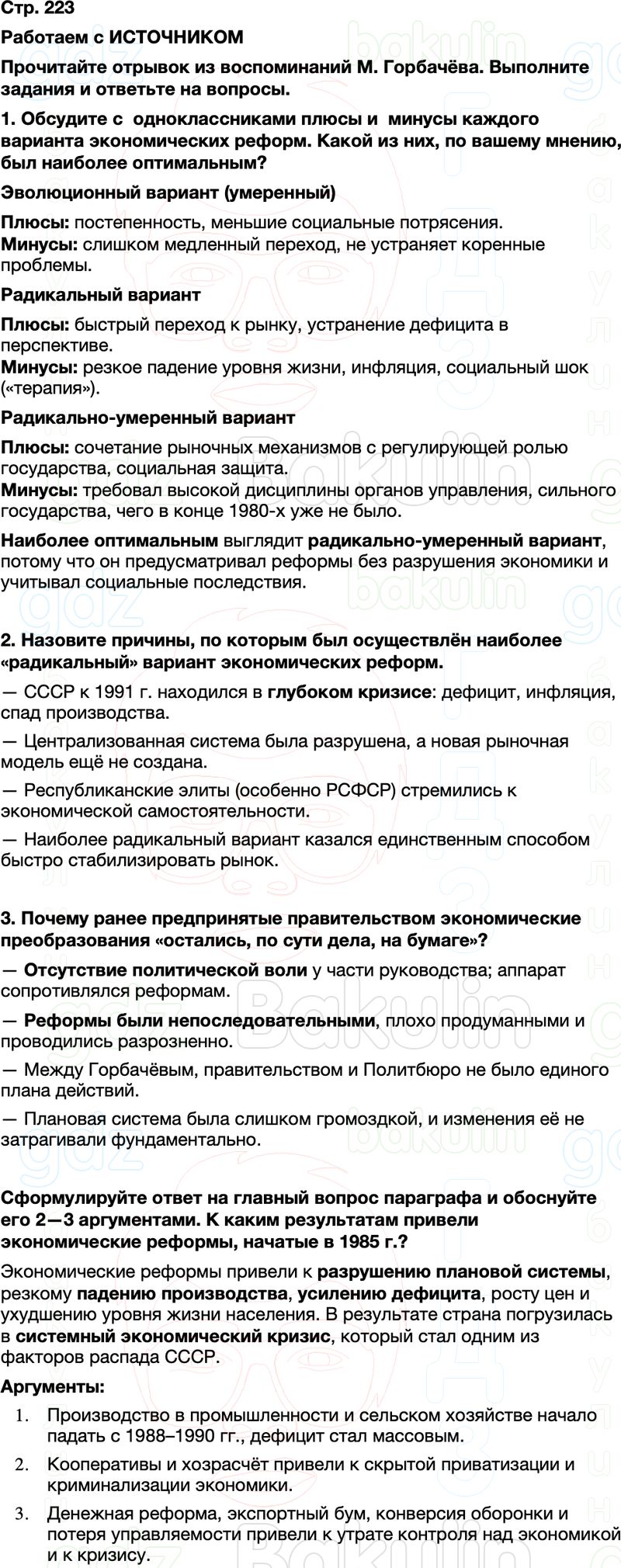1. Обсудите с одноклассниками плюсы и минусы каждого варианта экономических реформ. Какой из них, по вашему мнению, был наиболее оптимальным?