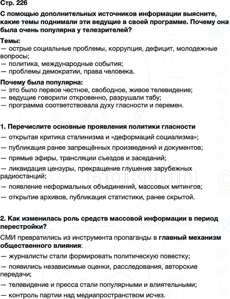 2. Как изменилась роль средств массовой информации в период перестройки?