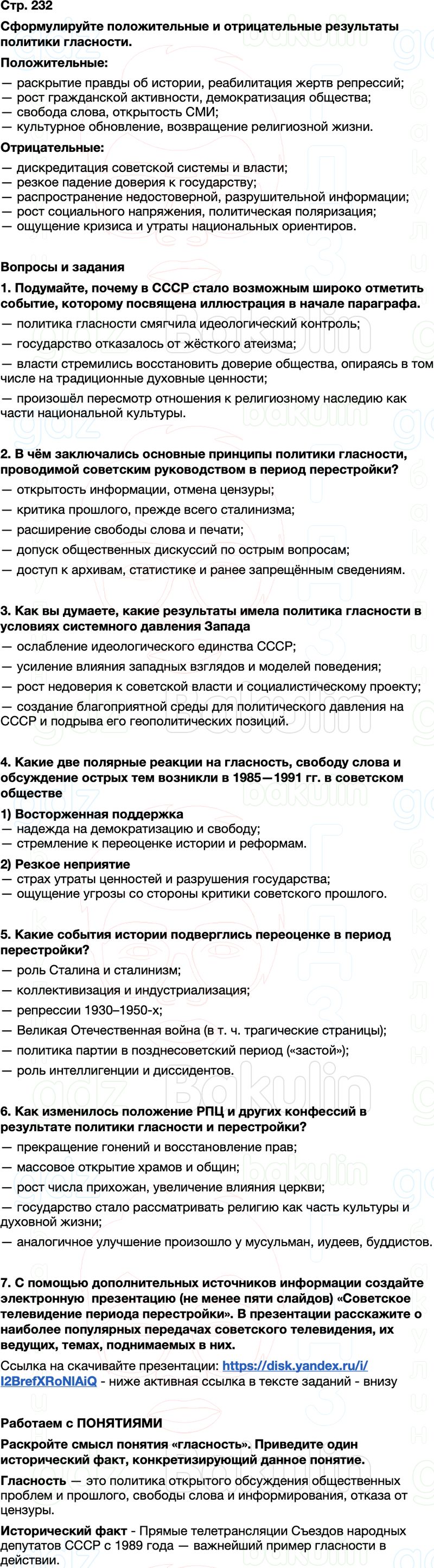 7. С помощью дополнительных источников информации создайте электронную презентацию (не менее пяти слайдов) «Советское телевидение периода перестройки». В презентации расскажите о наиболее популярных передачах советского телевидения, их ведущих, темах, поднимаемых в них. Раскройте смысл понятия «гласность». Приведите один исторический факт, конкретизирующий данное понятие.