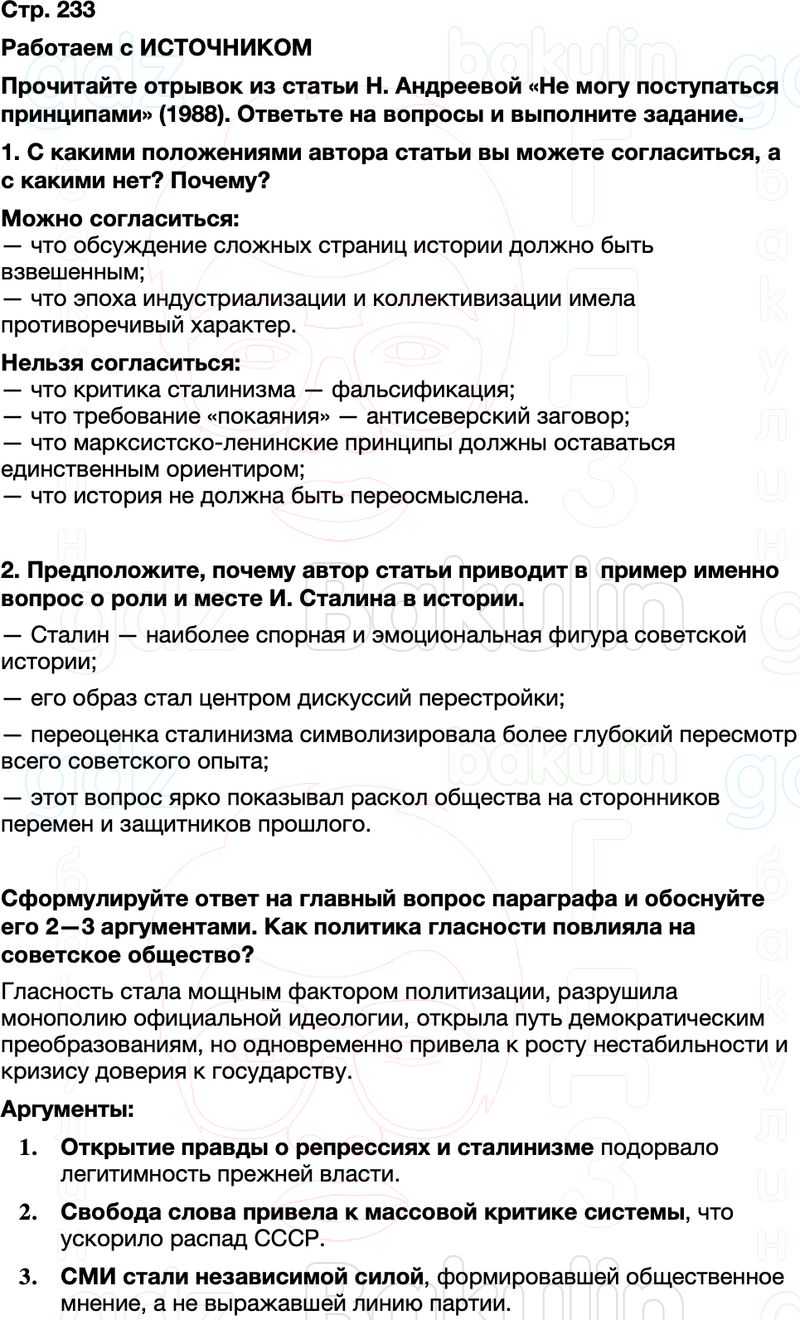 2. Предположите, почему автор статьи приводит в пример именно вопрос о роли и месте И. Сталина в истории. Сформулируйте ответ на главный вопрос параграфа и обоснуйте его 2—3 аргументами.