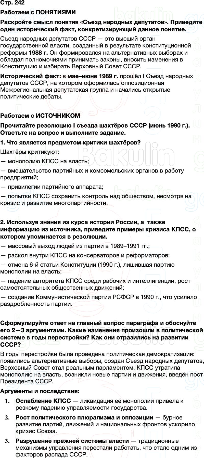 Раскройте смысл понятия «Съезд народных депутатов». Приведите один исторический факт, конкретизирующий данное понятие. Прочитайте резолюцию I съезда шахтёров СССР (июнь 1990 г.). Ответьте на вопрос и выполните задание. Что является предметом критики шахтёров? 2. Используя знания из курса истории России, а также информацию из источника, приведите примеры кризиса КПСС, о котором упоминается в резолюции. Сформулируйте ответ на главный вопрос параграфа и обоснуй- те его 2—3 аргументами.