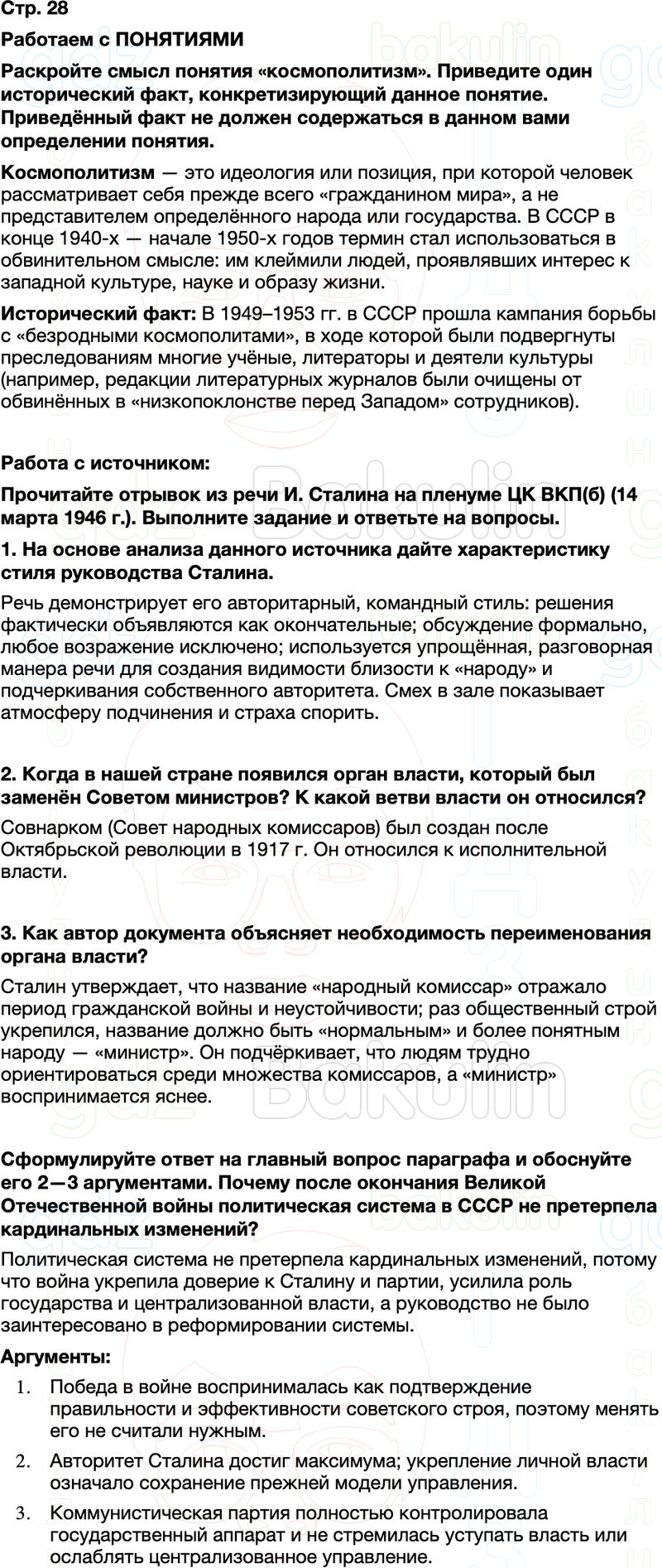 Готовый вариант выполнения заданий История России для школьников 11 класса