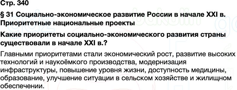 Какие приоритеты социально-экономического развития страны существовали в начале XXI в.?