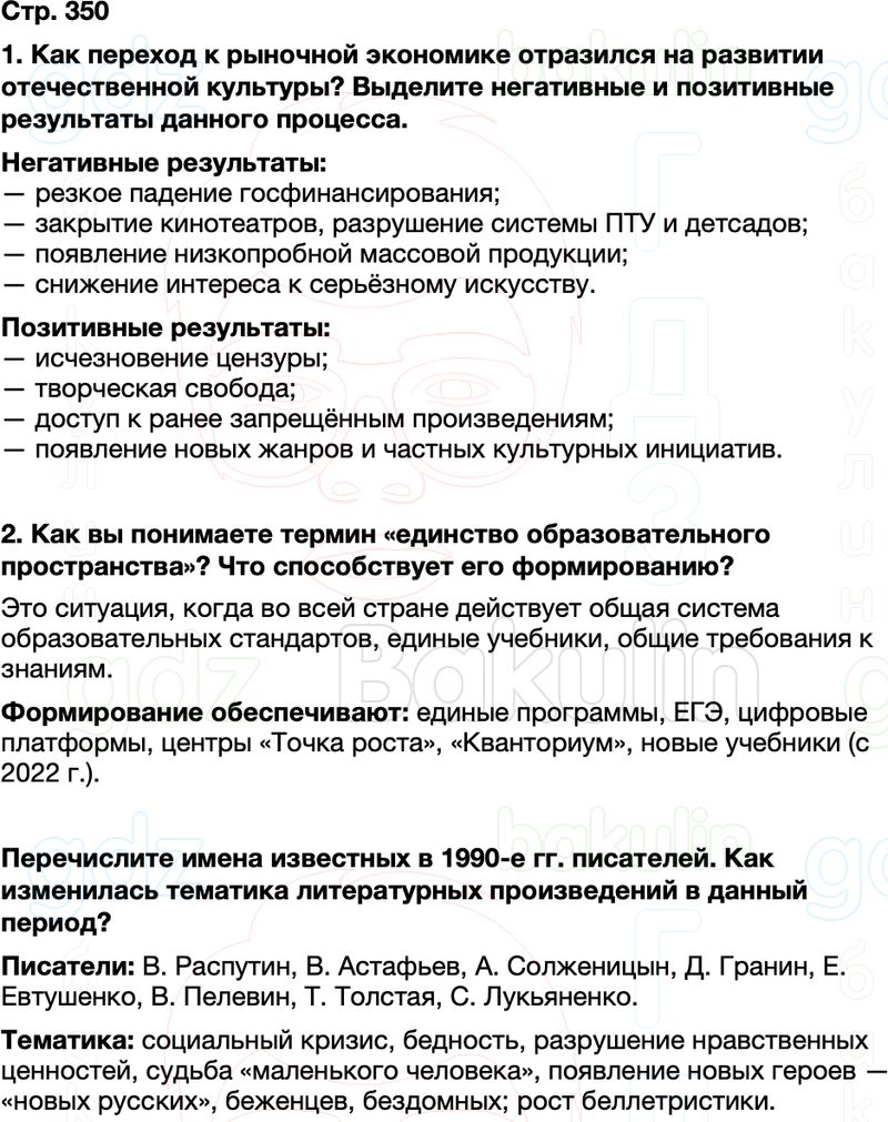 2. Как вы понимаете термин «единство образовательного пространства»? Что способствует его формированию? Перечислите имена известных в 1990-е гг. писателей. Как изменилась тематика литературных произведений в данный период?