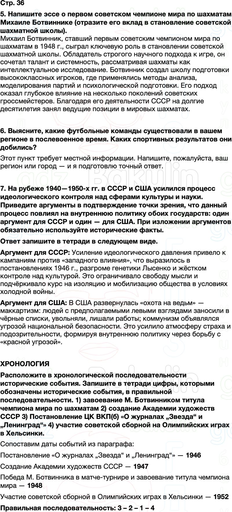 7) На рубеже 1940—1950-х гг. в СССР и США усилился процесс идеологического контроля над сферами культуры и науки. Приведите аргументы в подтверждение точки зрения, что данный процесс повлиял на внутреннюю политику обоих государств: один аргумент для СССР и один — для США. При изложении аргументов обязательно используйте исторические факты.