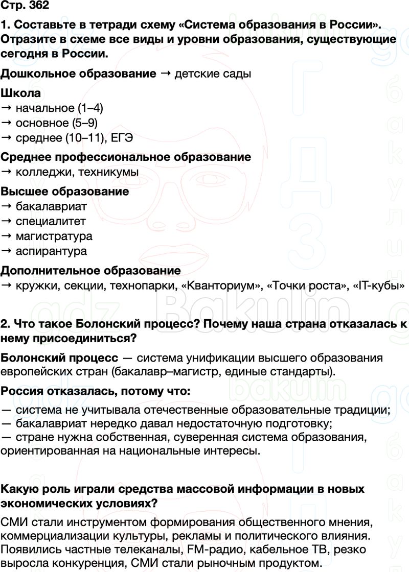 1. Составьте в тетради схему «Система образования в России». Отразите в схеме все виды и уровни образования, существующие сегодня в России.