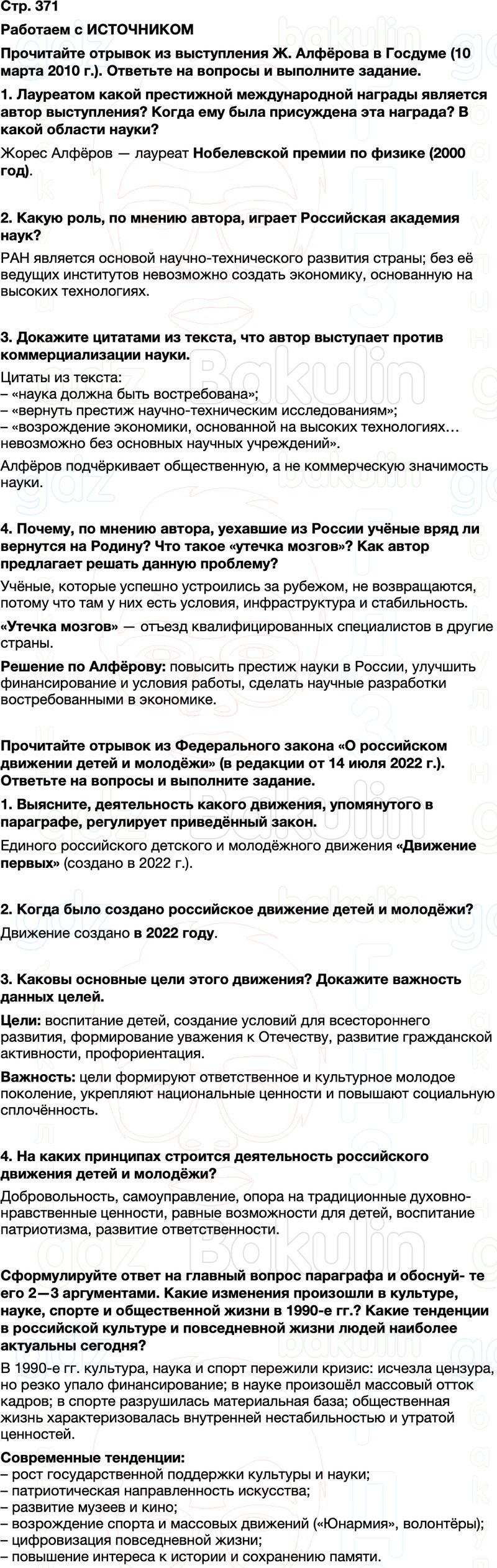 Готовый вариант выполнения заданий Учебник по истории для 11 класса