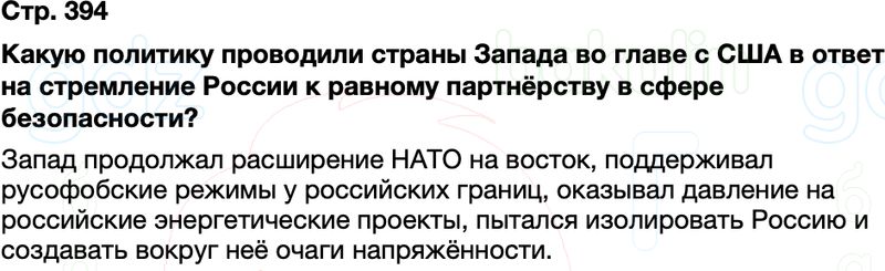 Какую политику проводили страны Запада во главе с США в ответ на стремление России к равному партнёрству в сфере безопасности?