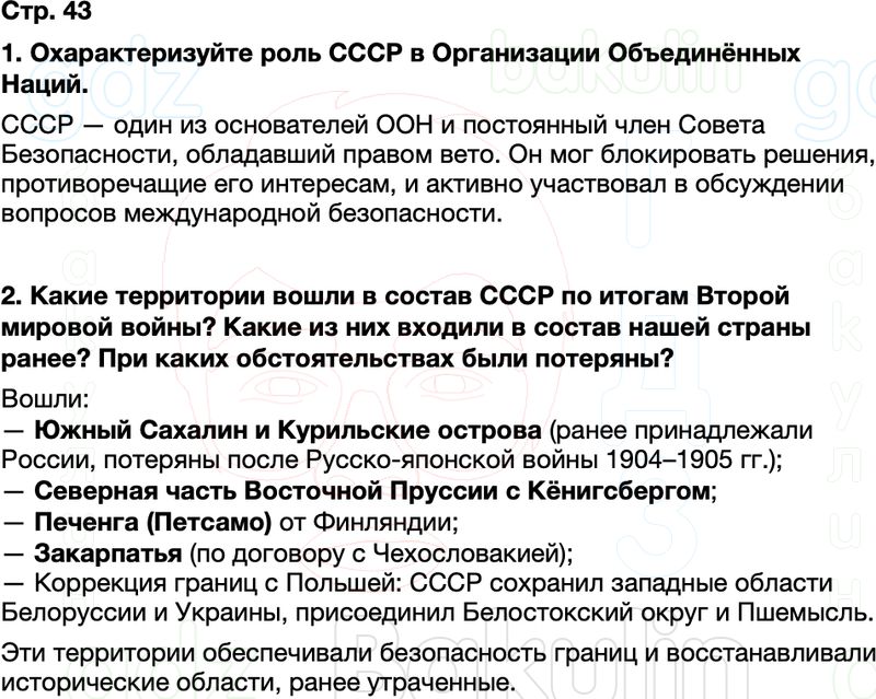 2. Какие территории вошли в состав СССР по итогам Второй мировой войны?
