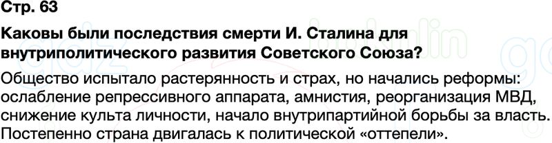 Каковы были последствия смерти И. Сталина для внутриполитического развития Советского Союза?