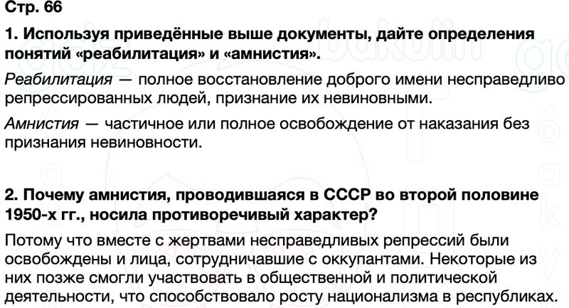 1. Дайте определения понятий «реабилитация» и «амнистия», используя приведённые документы.