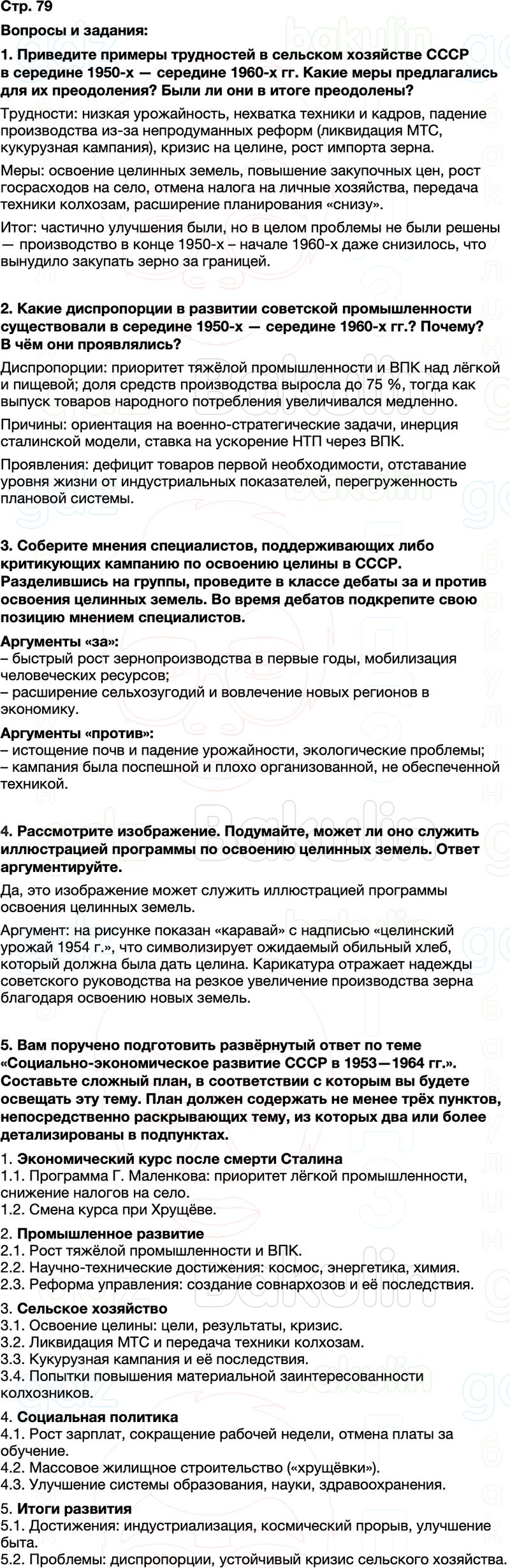 3) Соберите мнения специалистов, поддерживающих либо критикующих кампанию по освоению целины в СССР. Разделившись на группы, проведите в классе дебаты за и против освоения целинных земель. Во время дебатов подкрепите свою позицию мнением специалистов.
