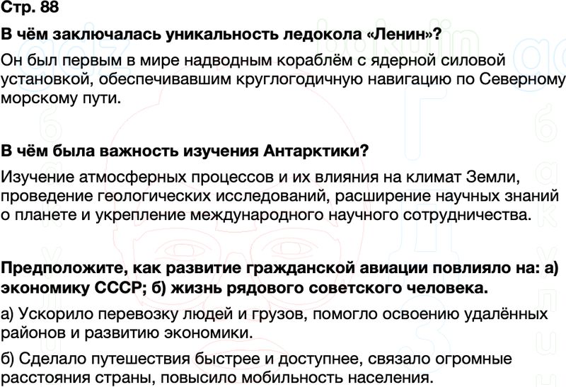 В чём заключалась уникальность ледокола «Ленин»? В чём была важность изучения Антарктики? Предположите, как развитие гражданской авиации повлияло на: а) экономику СССР; б) жизнь рядового советского человека.
