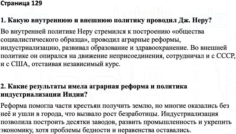1. Какую внутреннюю и внешнюю политику проводил Дж. Неру?