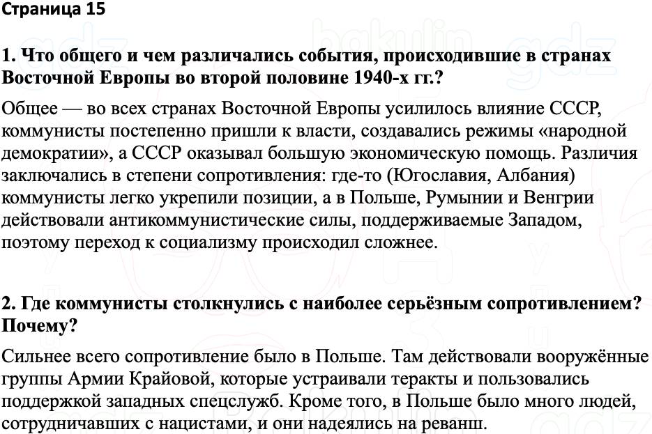 1. Что общего и чем различались события, происходившие в странах Восточной Европы во второй половине 1940-х гг.?