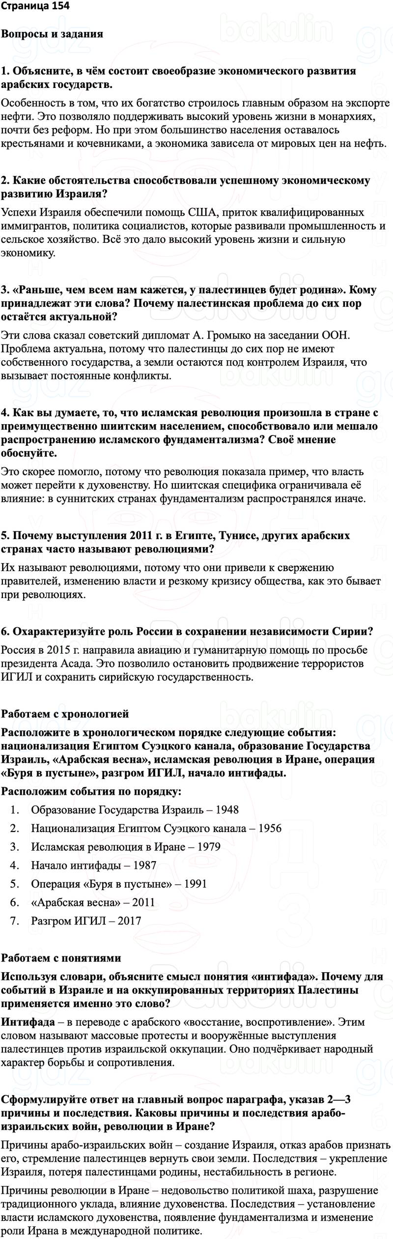 Расположите в хронологическом порядке следующие события: национализация Египтом Суэцкого канала, образование Государства Израиль, «Арабская весна», исламская революция в Иране, операция «Буря в пустыне», разгром ИГИЛ, начало интифады.