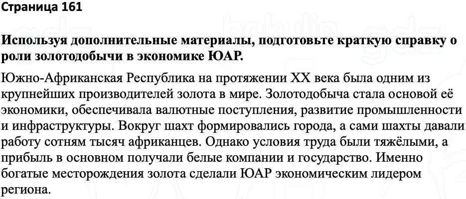 Используя дополнительные материалы, подготовьте краткую справку о роли золотодобычи в экономике ЮАР.