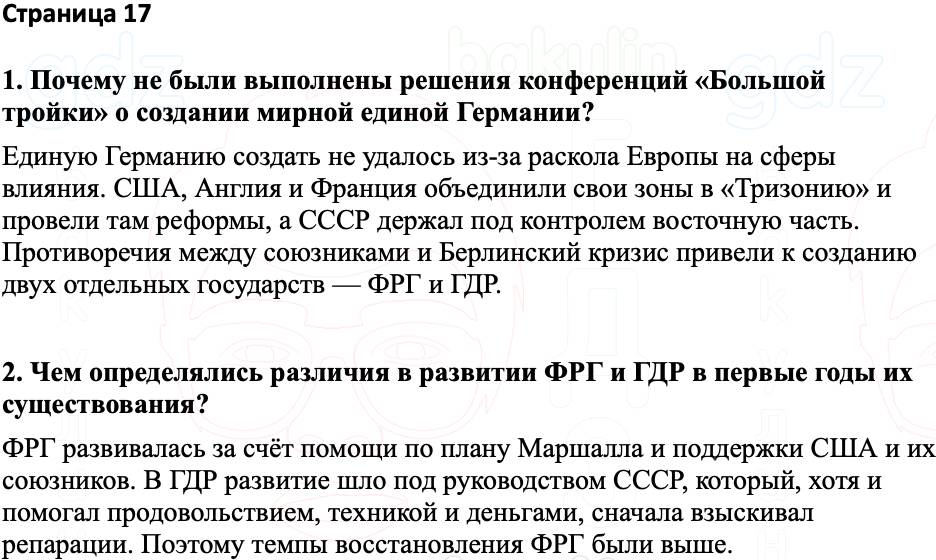 1. Почему не были выполнены решения конференций «Большой тройки» о создании мирной единой Германии?