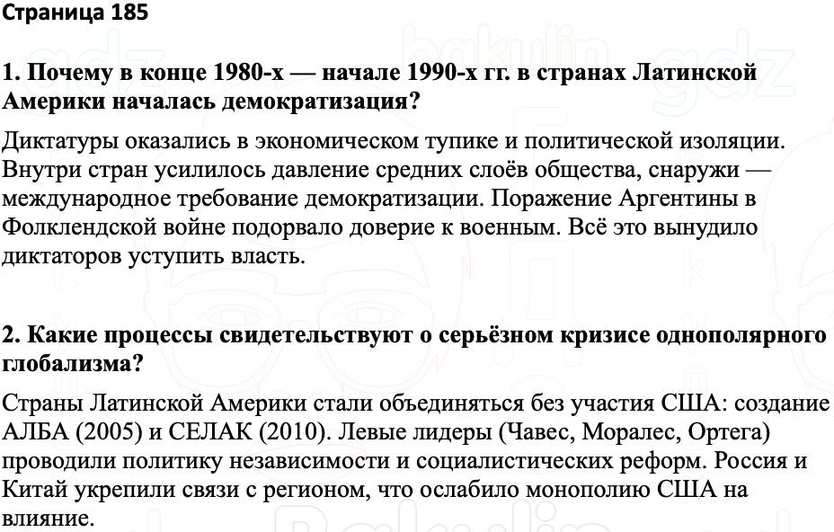 1. Почему в конце 1980-х — начале 1990-х гг. в странах Латинской Америки началась демократизация?
