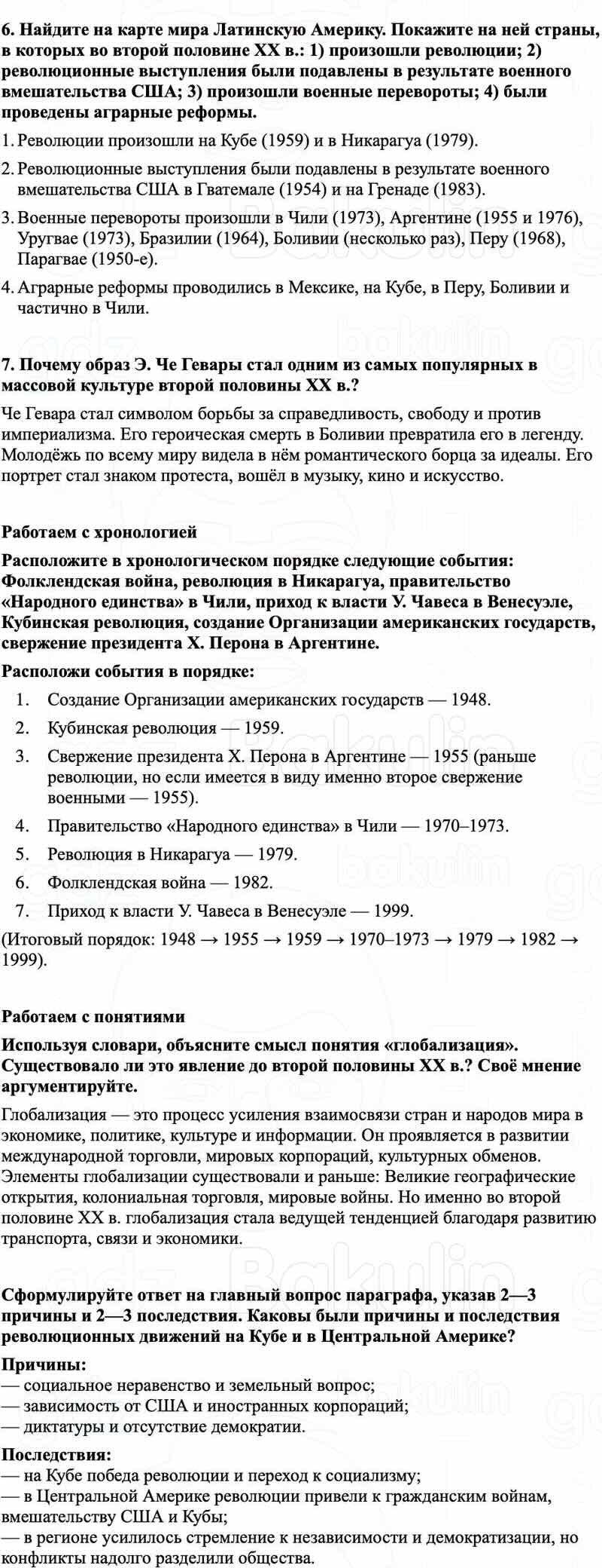 - Найдите на карте мира Латинскую Америку. Покажите на ней страны, в которых во второй половине ХХ в.: 1) произошли революции; 2) революционные выступления были подавлены в результате военного вмешательства США; 3) произошли военные перевороты; 4) были проведены аграрные реформы.