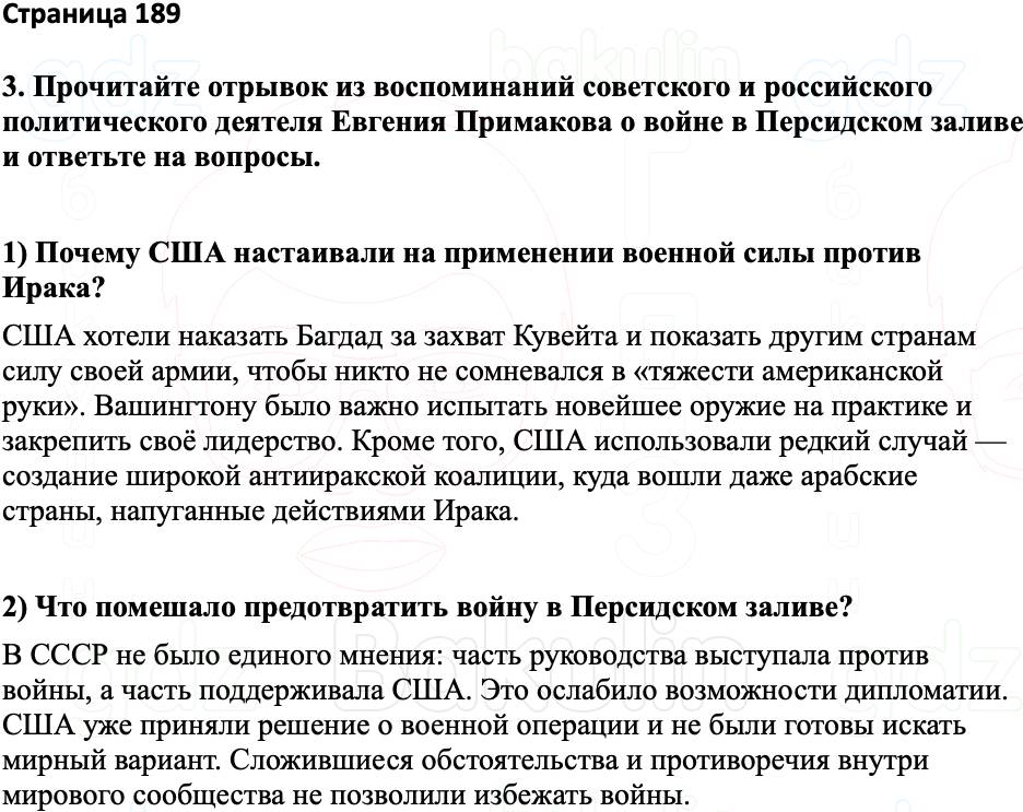 3. Прочитайте отрывок из воспоминаний советского и российского политического деятеля Евгения Примакова о войне в Персидском заливе и ответьте на вопросы.