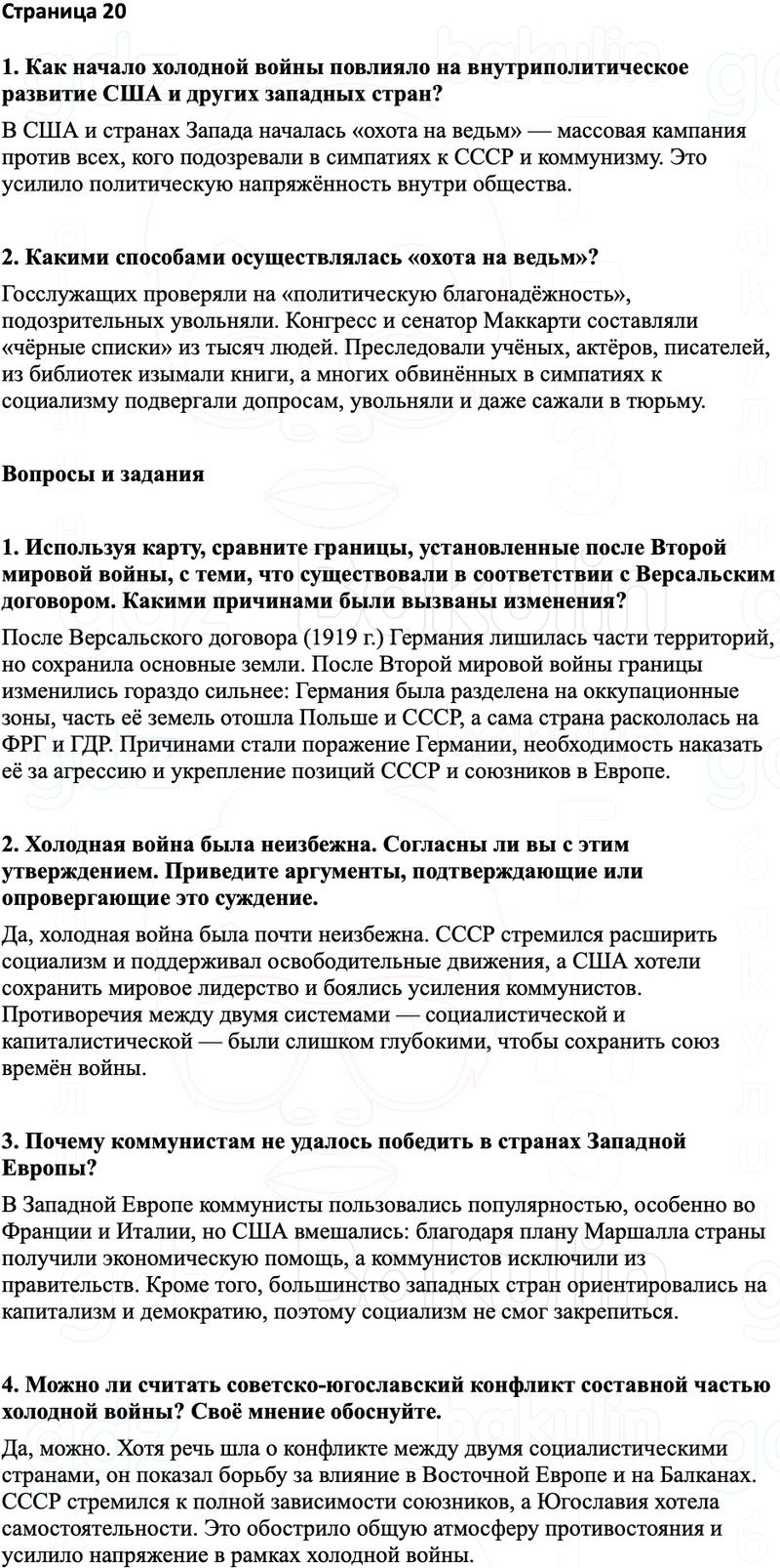 1. Используя карту, сравните границы, установленные после Второй мировой войны, с теми, что существовали в соответствии с Версальским договором. Какими причинами были вызваны изменения?