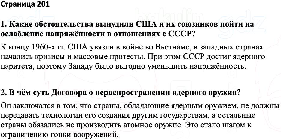 1. Какие обстоятельства вынудили США и их союзников пойти на ослабление напряжённости в отношениях с СССР?