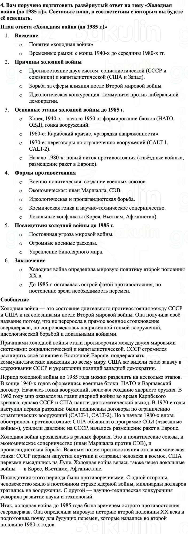 - Вам поручено подготовить развёрнутый ответ на тему «Холодная война (до 1985 г.)». Составьте план, в соответствии с которым вы будете её освещать.