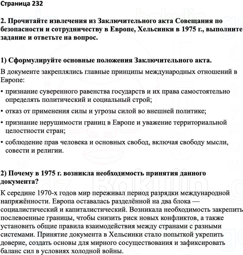 2. Прочитайте извлечения из Заключительного акта Совещания по безопасности и сотрудничеству в Европе, Хельсинки в 1975 г., выполните задание и ответьте на вопрос.