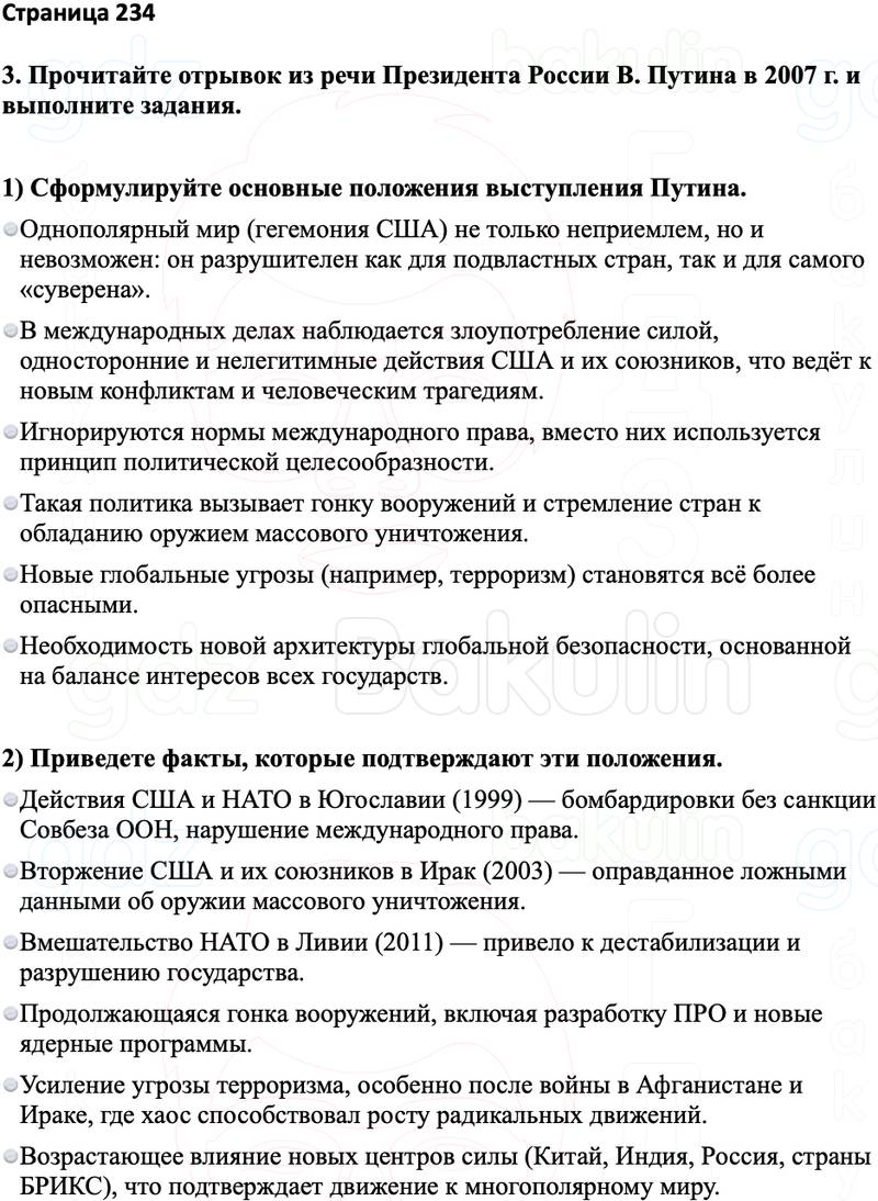 3. Прочитайте отрывок из речи Президента России В. Путина в 2007 г. и выполните задания.
