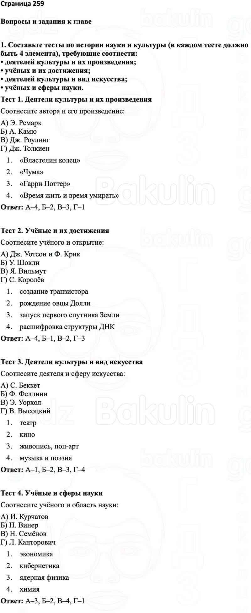 - Составьте тесты по истории науки и культуры (в каждом тесте должно быть 4 элемента), требующие соотнести: