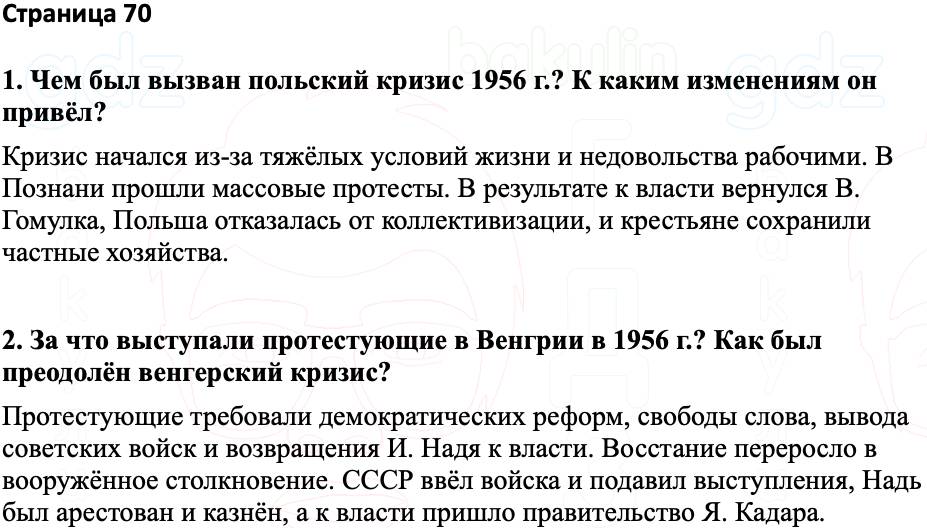 1. Чем был вызван польский кризис 1956 г.? К каким изменениям он привёл?