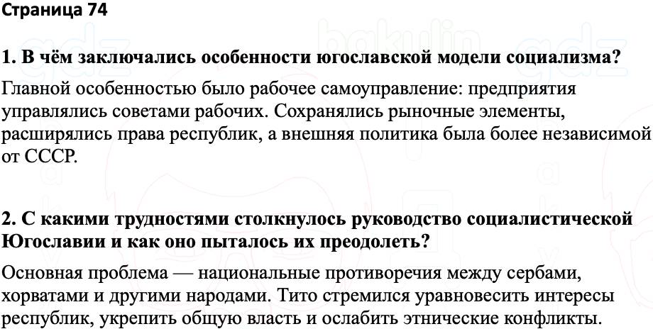 1. В чём заключались особенности югославской модели социализма? 2. С какими трудностями столкнулось руководство социалистической Югославии и как оно пыталось их преодолеть?